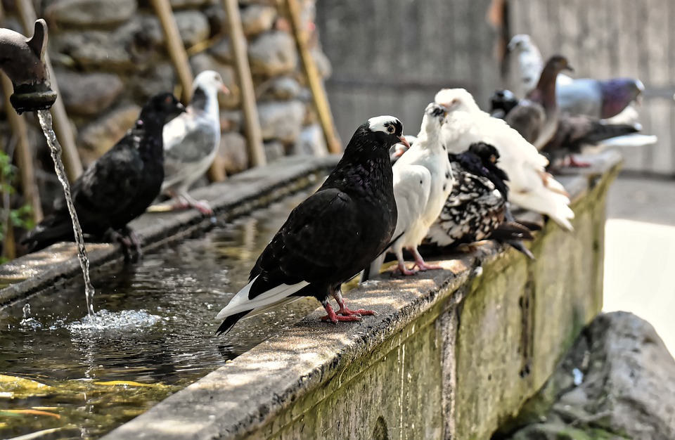 El sobrecalentamiento de las palomas, pero también la humidificación del aire se hace colocando jaulas con agua en la jaula.